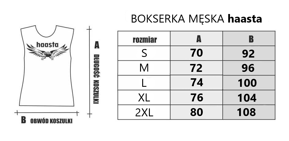Koszulka Bokserka Męska Haasta została wykonana z bawełny platerowanej elastanem co zapewnia jej wysoką elastyczność i optymalne dopasowanie do sylwetki noszącej ją osoby. Użyta dzianina zapewnia dodatkowo wysoką stabilność materiału i trwałość kolorów. Zastosowany w koszulce krój nie krępuje ruchów przez co nadaje się jako strój sportowy dla aktywnych ludzi. Każda bokserka pakowana jest pojedynczo na tekturowym kartoniku i opakowana w torebkę Haasta zamykaną listwą z klejem. Wykonana z bawełny z domieszką elastanu.