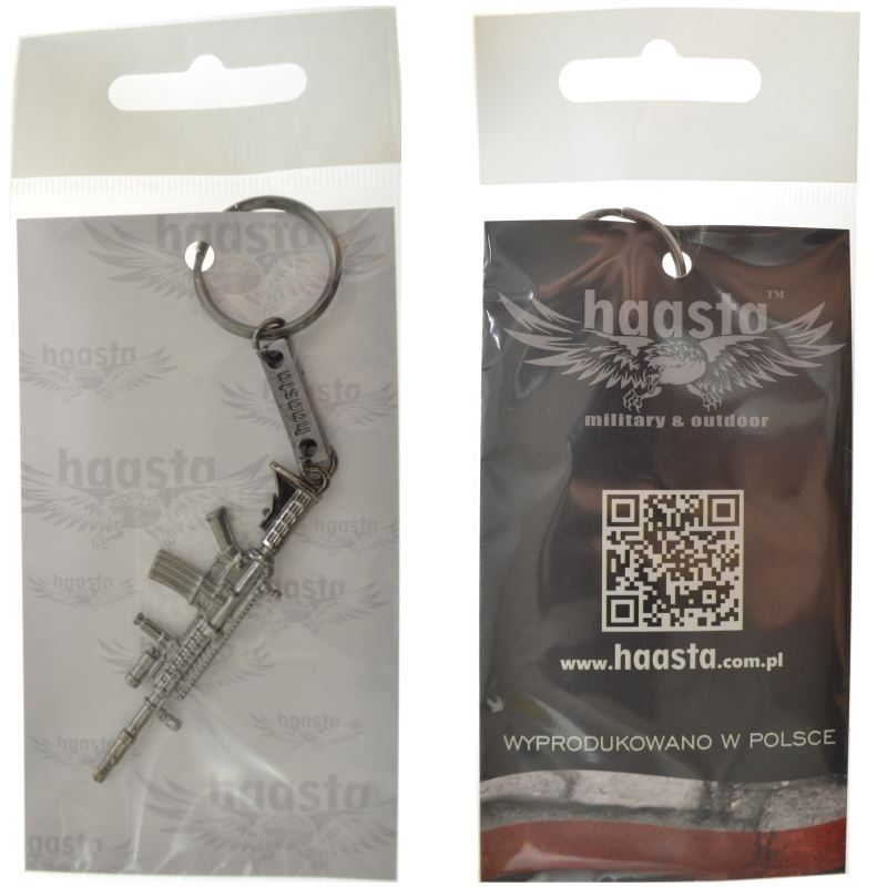 Brelok Haasta wzorowany na karabinie HK416. Brelok jest długości 6,2 cm wyposażony w zawieszkę o długości 2 cm oraz kółko mocujące o średnicy 2,5 cm.