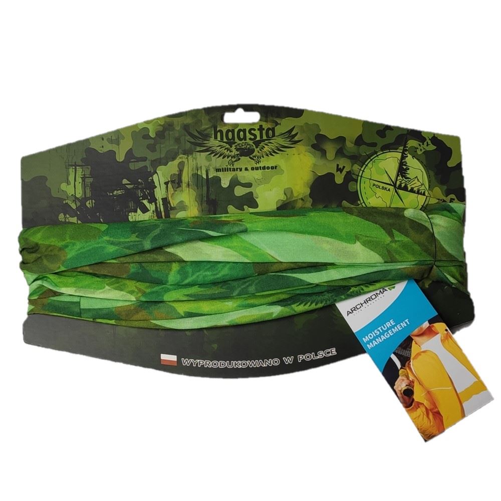 Nasza chusta wielofunkcyjna wzór kamuflaż ryby zielona jest zarówno ciekawym pomysłem na urozmaicenie stroju oraz modnym dodatkiem. Chusta wielofunkcyjna Haasta to wszechstronny produkt. Chusta jest doskonała do stosowana na wiele sposobów w użytku codziennym. W bardzo łatwy sposób z chusty można zrobić czapkę, maskę, opaskę czy kominiarkę. Może służyć także jako szalik czy ozdobna apaszka lub jako maseczka ochronna na twarz.