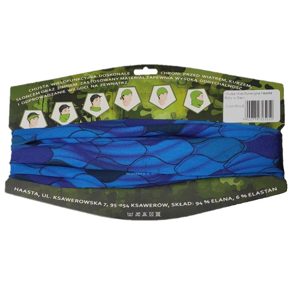Nasza chusta termoaktywna wzór Ryby w sieci jest zarówno ciekawym pomysłem na urozmaicenie stroju oraz modnym dodatkiem. Chusta wielofunkcyjna Haasta to wszechstronny produkt. Chusta jest doskonała do stosowana na wiele sposobów w użytku codziennym. W bardzo łatwy sposób z chusty można zrobić czapkę, maskę, opaskę czy kominiarkę. Może służyć także jako szalik czy ozdobna apaszka lub jako maseczka ochronna na twarz.