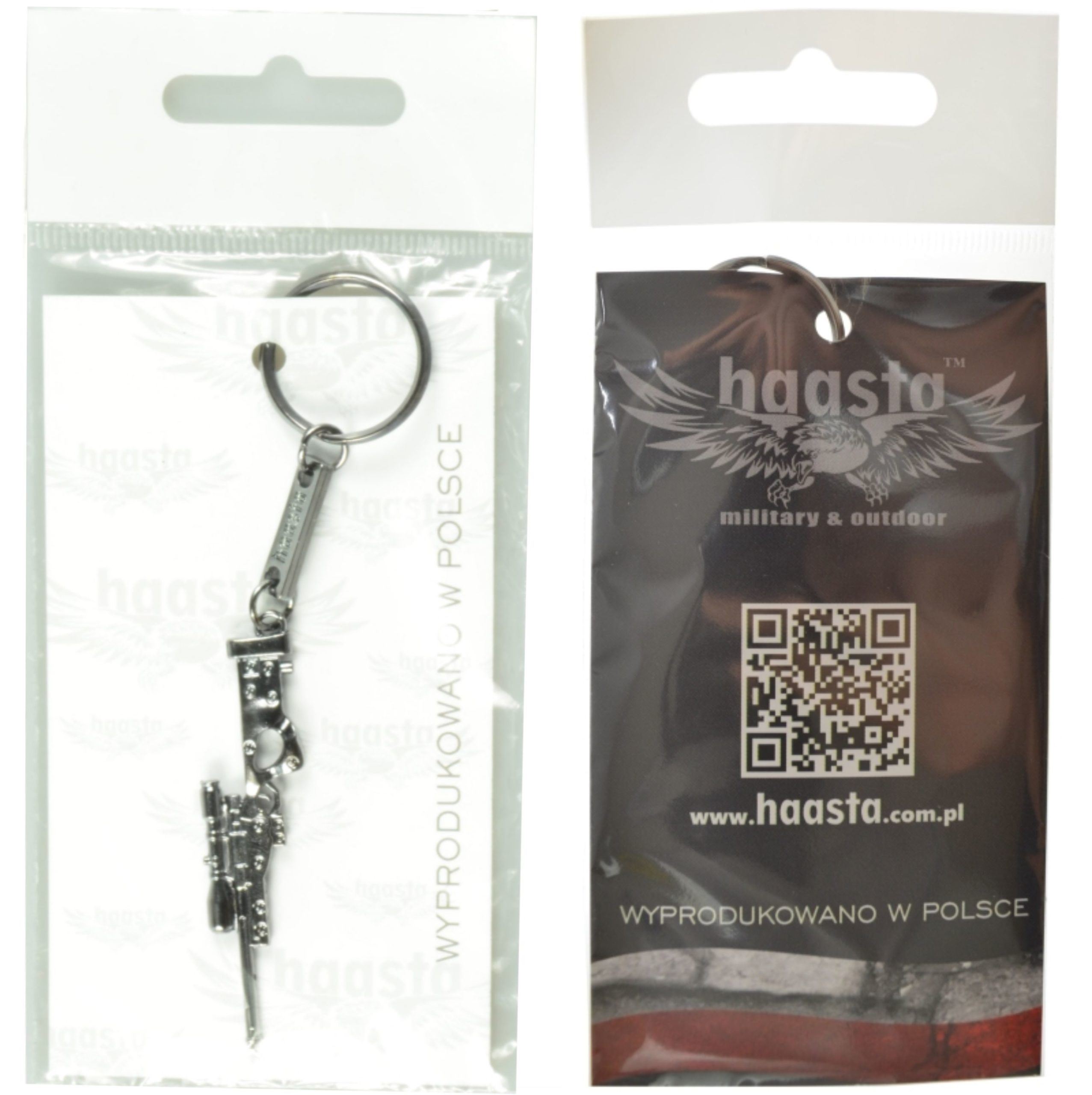 Brelok Haasta wzorowany na brytyjskim karabinie AI AW L96. Brelok jest długości 6 cm wyposażony w zawieszkę o długości 2 cm oraz kółko mocujące średnicy 2,5 cm.