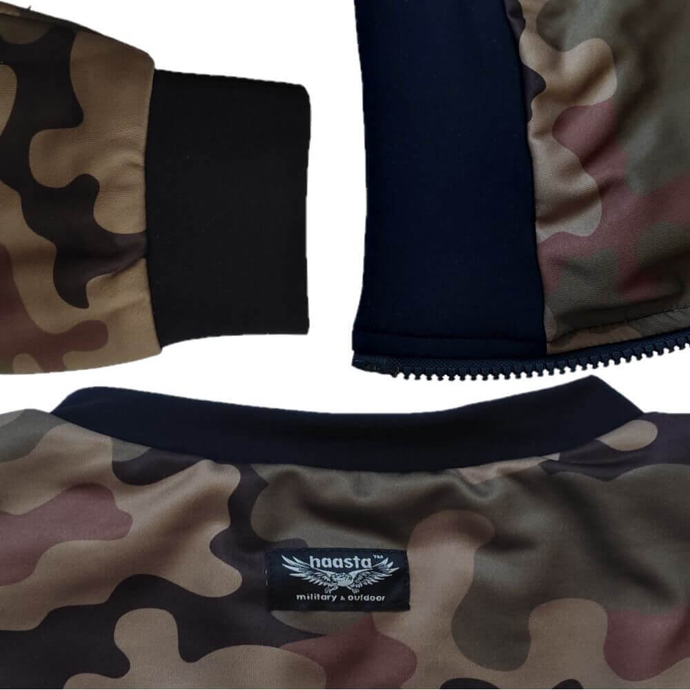 Prezentowana kurtka jest dwustronna co oznacza że jedna strona to kamuflaż Wz93 Pantera Leśna z czarnymi ściągaczami, natomiast druga jest w całości czarna. Zastosowane rozwiązanie kurtki dwustronnej daje nam możliwość szybkiej zmiany wyglądu przez co mamy błyskawiczną możliwość zmiany stroju od ręki.