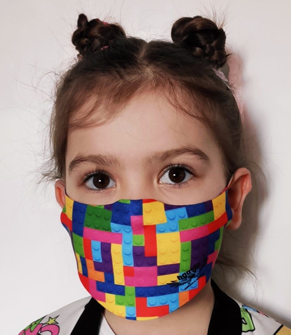 Maseczka dziecięca ochronna wzór Klocki dzięki zastosowanemu materiałowi  jest przyjemna w dotyku a co najważniejsze wygodna w użytkowaniu.