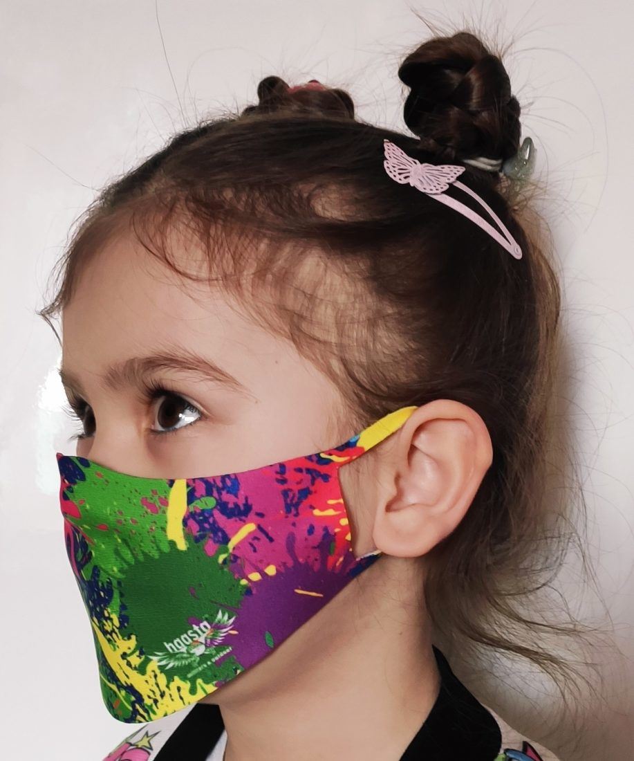 Maseczka wielokrotnego użytku, ochronna z grafiką na całej powierzchni. Maseczka dopasowuje się do kształtu twarzy, jest wygodna w noszeniu, nie powoduje otarć oraz co najważniejsze nie sprawia kłopotów z oddychaniem. Maseczka zapewnia swobodny przepływ powietrza, co ogranicza potliwość i gromadzenie wilgoci wewnątrz maski przy zachowaniu odpowiedniej izolacji od czynników zewnętrznych. Cała konstrukcja maseczki dziecięcej  jest wykonywana z jednego kawałka tkaniny metodą cięcia laserowego. Dzięki wykorzystania takiej technologi ograniczyliśmy ilość bezpośredniego kontaktu osób z produktem.