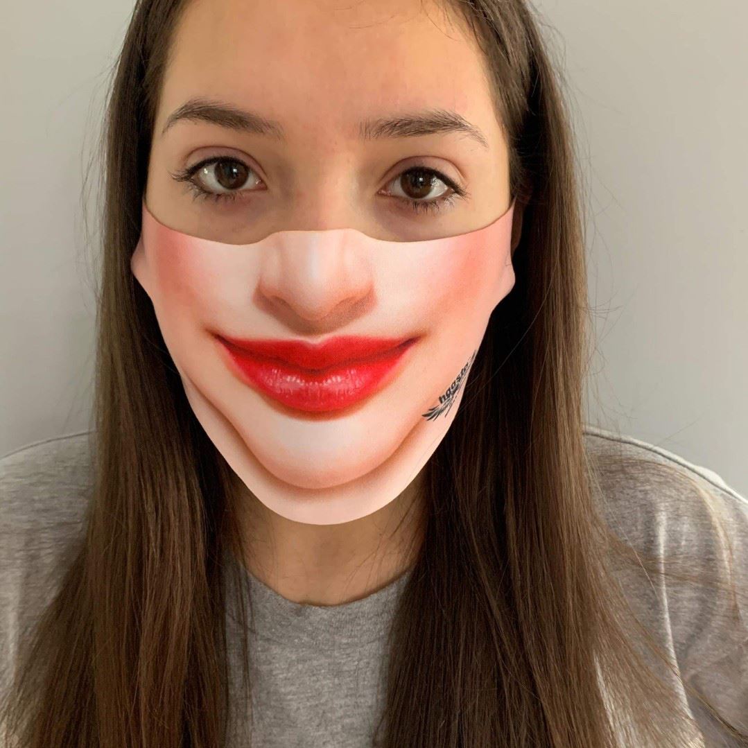Maseczka ochronna wzór Usta damsko/młodzieżowa dzięki zastosowanemu materiałowi jest przyjemna w dotyku a co najważniejsze wygodna w użytkowaniu.